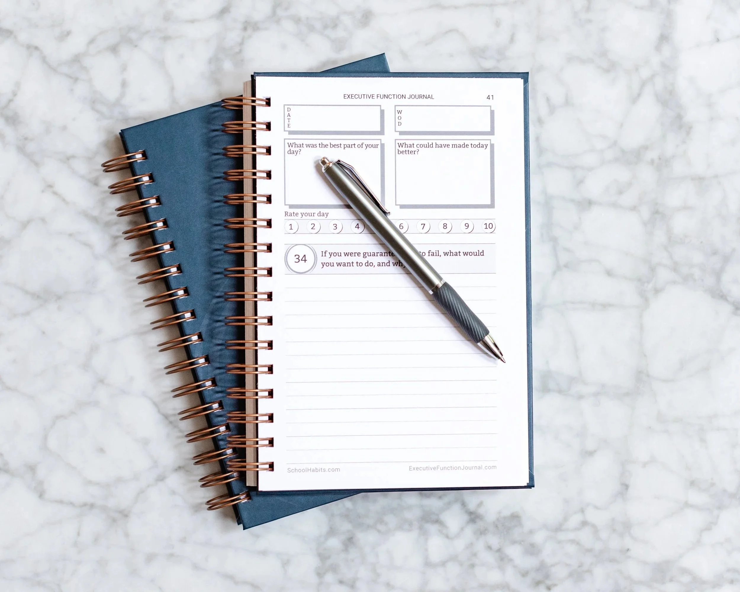 Just one page a day. 7 minutes max. The power of the Executive Function Journal is in the routine.